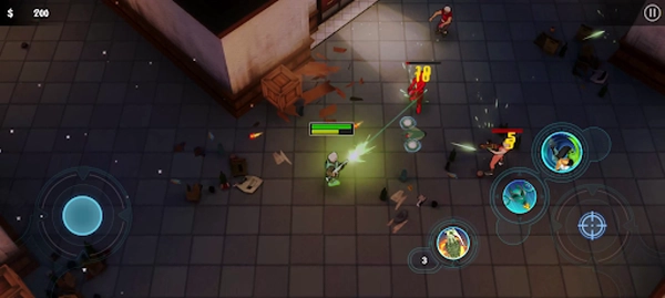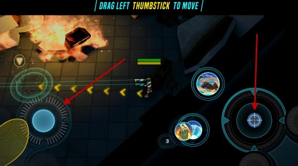 4、通过屏幕左侧的摇杆来操控角色移动,借助右侧的摇杆完成射击操作。
