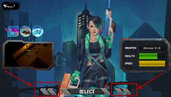 2、进入角色选择界面,点击下方两侧的按键可切换不同的角色。