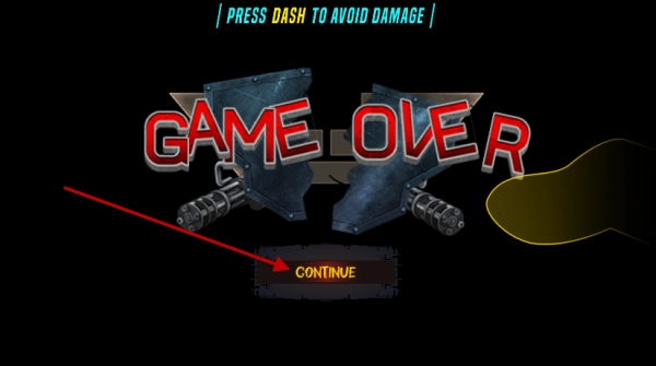 5、若游戏失败,可点击“CONTINUE”按钮返回主界面重新开始。
