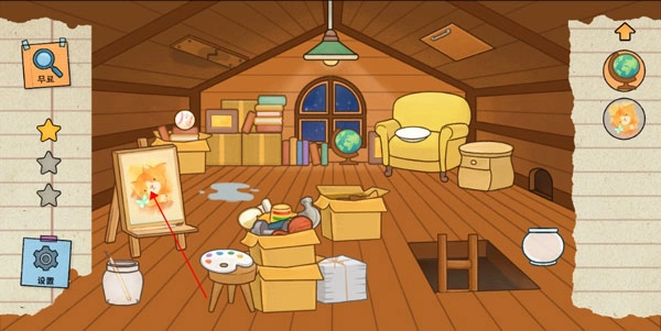 2. 画面右侧列出了所有待寻找的失物,找到全部失物就能通关;要是实在找不着,可点击左上角的放大镜按钮获取帮助。