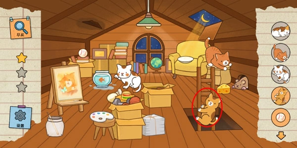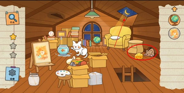 4. 把房顶打开,月光洒在沙发上时会出现一块奶酪,把这块奶酪放到老鼠洞口,就能引来一只猫咪。