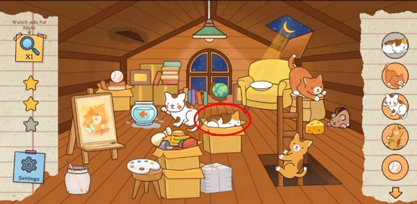6. 把手机上下晃一晃,最后一只小猫咪就会出现在纸箱里啦。
