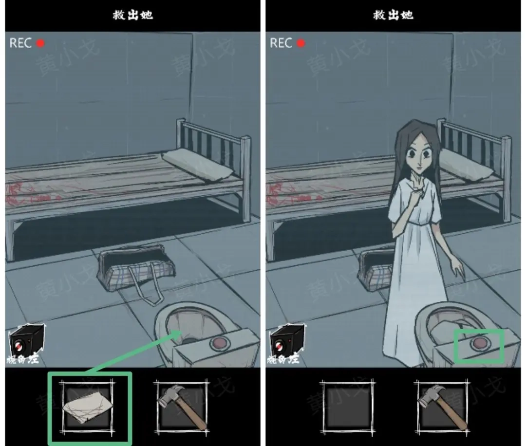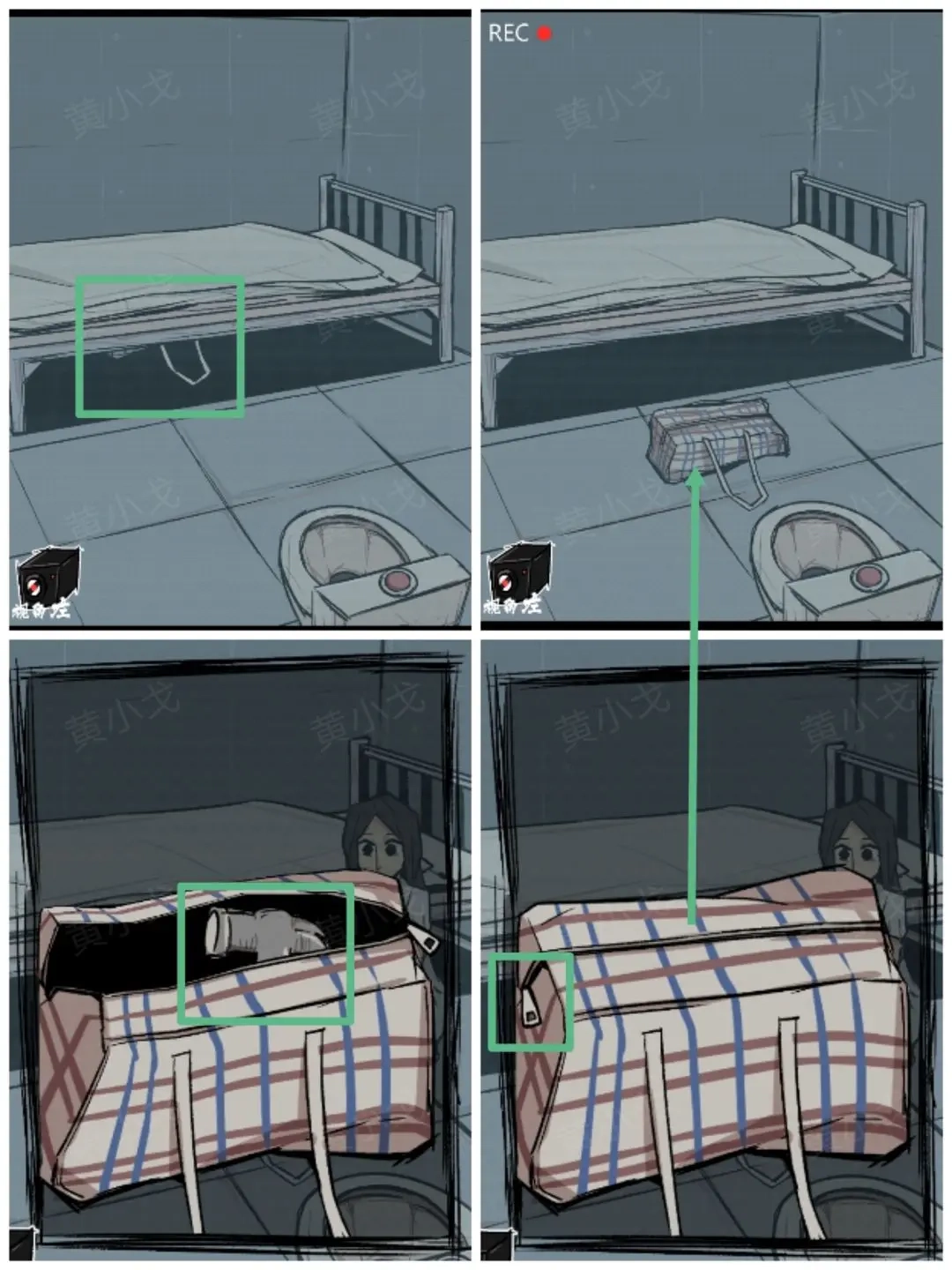 4.(视角左)点击拉出床底下的行李袋,拉开拉链,打开行李袋,获得【羊角锤】