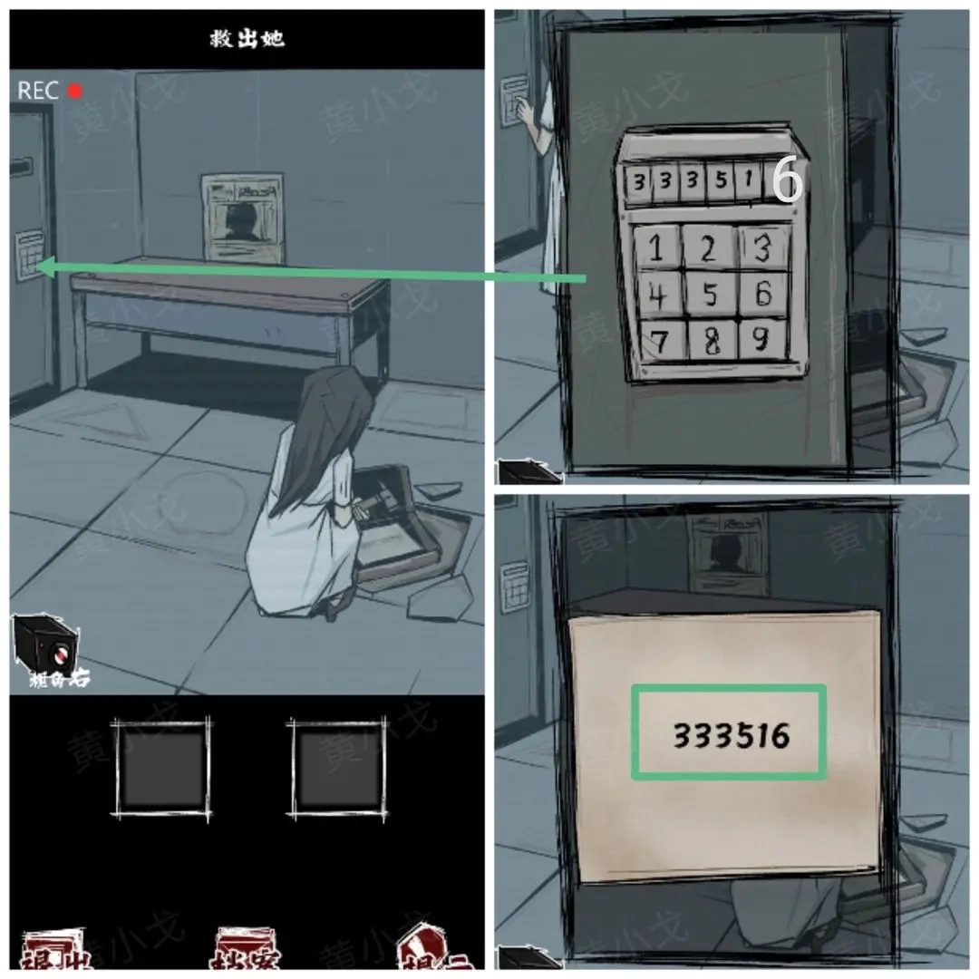 10.点击门上的锁,根据行李箱里纸条上的线索,输入密码:333516(密码是随机的)