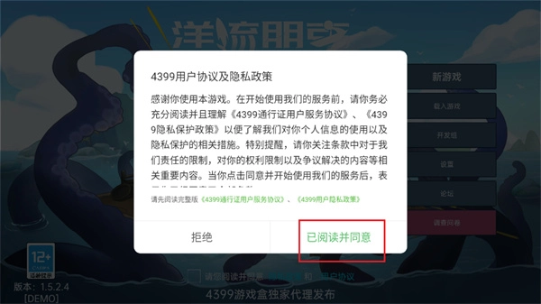 2、此时将会弹出一个登录的隐私协议,玩家需要点击屏幕右下角的【已阅读并同意】按钮;