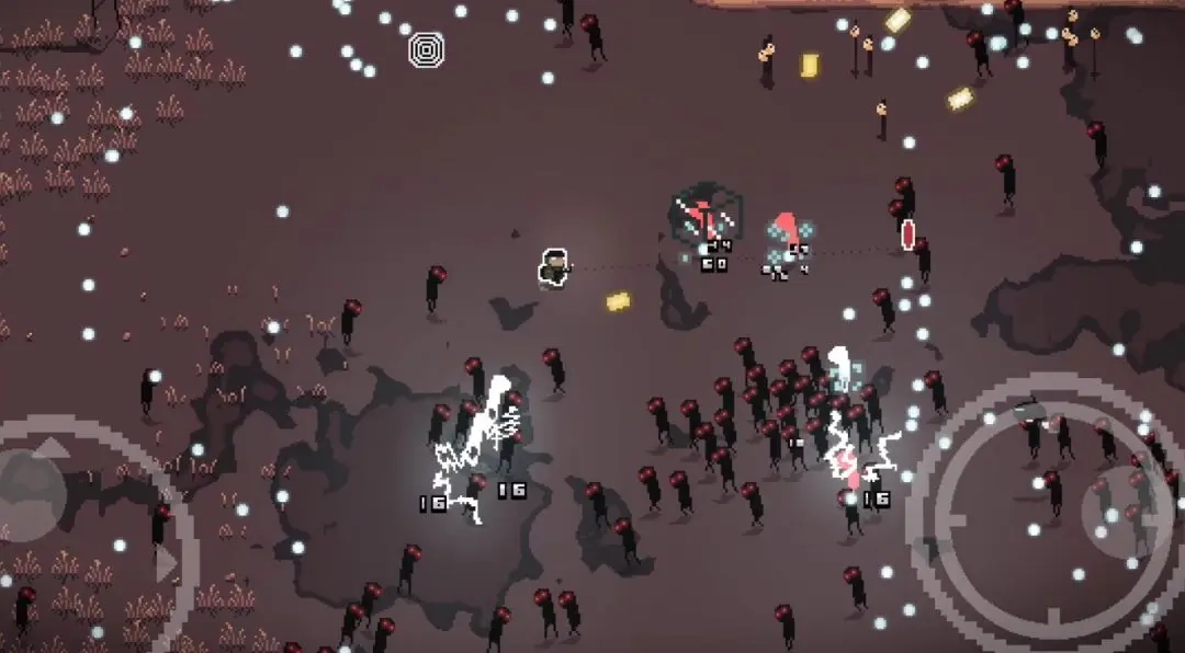 游戏采用直观的操作模式,左侧摇杆控制角色移动,右侧按键执行射击操作。需要注意的是,部分武器在攻击时可能对自身造成伤害,玩家使用时需多加谨慎。战斗中,玩家通过击杀怪物积累经验,每次升级都会随机提升属性,这些属性变化会在界面左侧实时呈现。