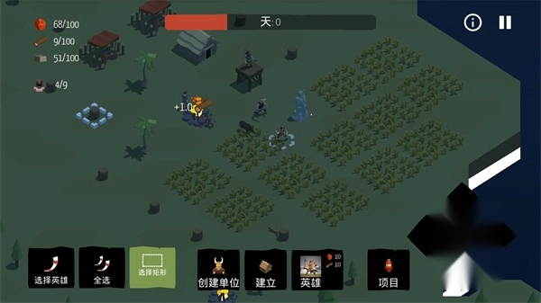 资源收集与基地建设:玩家需要建立农场、矿山和种植树木以收集资源,用于建设和升级基地。