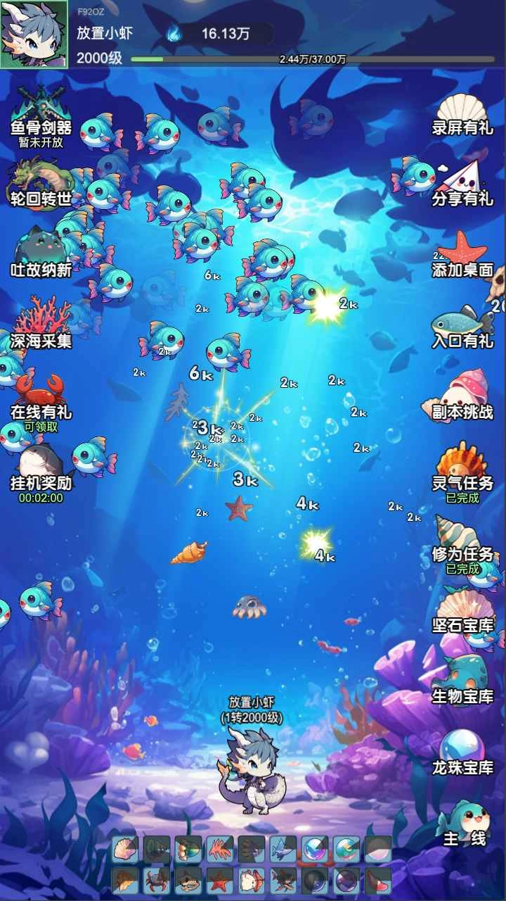 放置修龙是一款以深海修仙为背景的放置类手机游戏。在游戏中,玩家将化身为一条具备修仙潜能的小龙,于神秘莫测的海底世界里自在探索。通过完成各类任务与挑战,玩家能够持续提升自身修为,一步步成长为令四海为之震慑的神龙。
