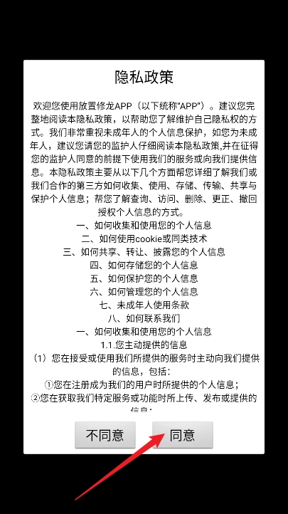 1、进行安装放置修龙,进入游戏选择同意