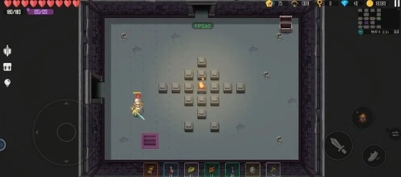 3、游戏中你可以使用炸弹、藏宝图、罗盘等道具突破机关,寻获神器,使用魔杖、弓箭、长矛、暗器等多种武器消灭魔物。