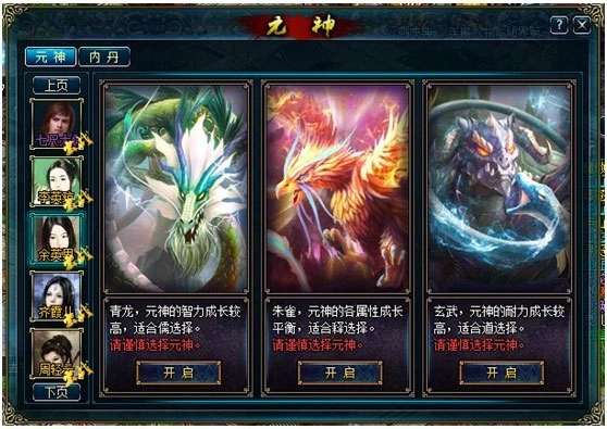 在蜀山中,每位散仙在60级后便可以拥有一个元神,玩家可在青龙、朱雀、玄武三种元神中选择一种