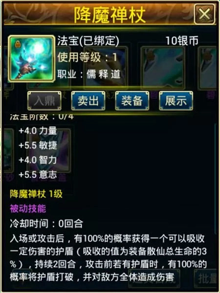 买完心法后可以在技能心法中为自己的散仙学习装备,装备后还可以用修为来升级自己的心法,让自己的散仙变得更为的强大。