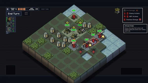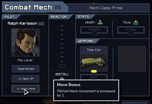 在《Into The Breach》的游戏机制里,HP其实是可以为了胜利而消耗的资源。不必担心让机甲承受一些较低的伤害,为了守护人类建筑,这样做完全值得。而且,机甲的HP降到0并不意味着它彻底损毁,只是暂时失去行动能力罢了。要是有机甲自带治疗被动技能,即便没了机师,它也能重启并继续投入战斗。失去“机师”(Pilot)或许会让你心里不太舒服,但损失一名机师并不会导致游戏直接“结束”。就算某次任务失败了,你也能把一名机师传送回另一条时间线,并且他的所有经验和已解锁的能力都会被保留下来。所以“培养-保护-继承”王牌机师就成了游戏的核心战略。由于每次只能传送回一名机师,小队里的另外两位机师基本上就相当于“易耗品”了。