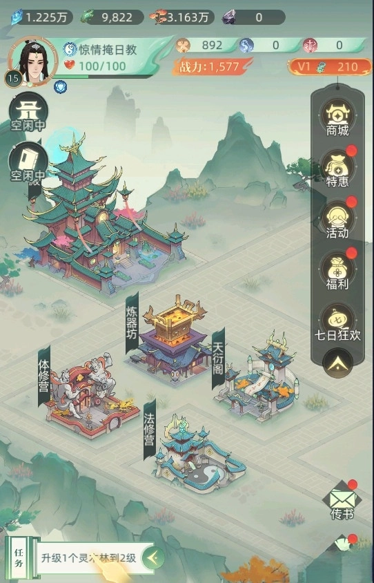 玩家在开始时就可以在主界面经营宗门,为宗门里的修士提供战力提升