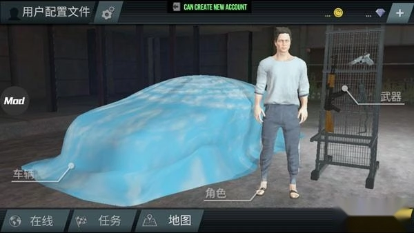 1、进入游戏主界面后,中间位置有一个汽车图形的图标,点击该图标即可进入赛车模式;另外,在步行模式的下方,还设有一个蓝色的赛车图标,点击此图标同样能够进入赛车模式。