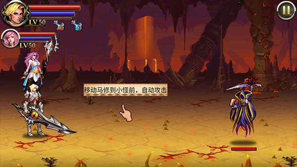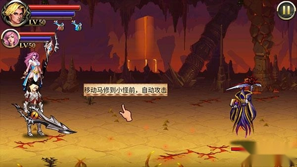 3、战斗时,你需要操控一名角色参与战斗,只需移动到怪物面前,角色就会自动发起攻击。