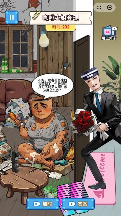 《女友的小心思》呈现了一段温馨却不乏波折的故事:咖啡忍者手捧鲜花满心欢喜地赴约,却看到咖啡小姐因饮食困扰出现了身材变化,房间也乱糟糟的。作为玩家,你得借助神奇的变身卡帮咖啡小姐找回理想状态,还得迅速收拾好杂乱的房间,一一跨越眼前的阻碍。游戏凭借巧妙设计的关卡与剧情,让玩家在协助角色解决难题的过程里,体会到爱情里的甜蜜与考验。
