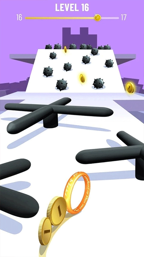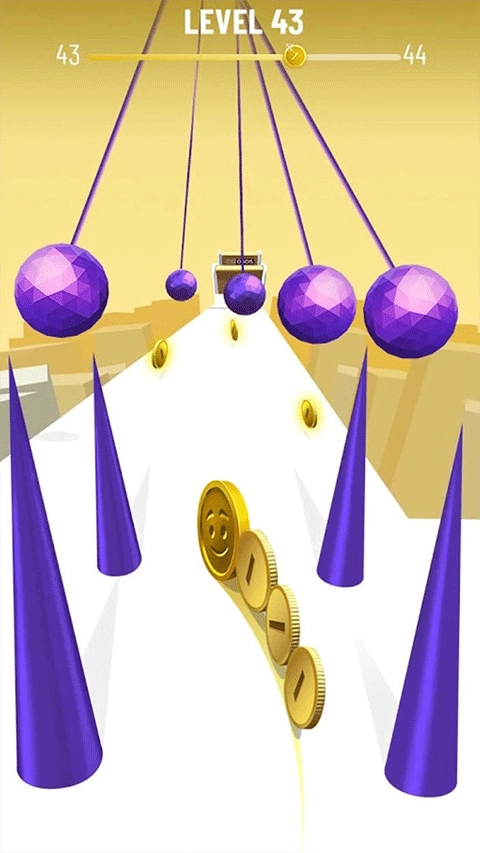 3、加入独特的速度坡道机制,硬币通过坡道后会立刻加快滚动速度,对玩家的控速技巧和即时反应能力是一种考验,充满挑战性。