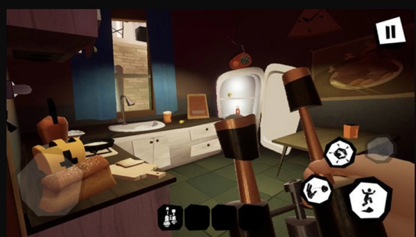 2、游戏采用第一人称视角设计,带来了强烈的沉浸感。特别是在开局阶段被大叔察觉时,主角慌乱地挥舞双手却不知所措,邻居则径直朝你冲来,画面逐渐变暗,那张放大的脸越来越近直至消失。不过到了后续章节,你也能和邻居交手对抗,尝试挣扎甚至寻找机会逃脱。