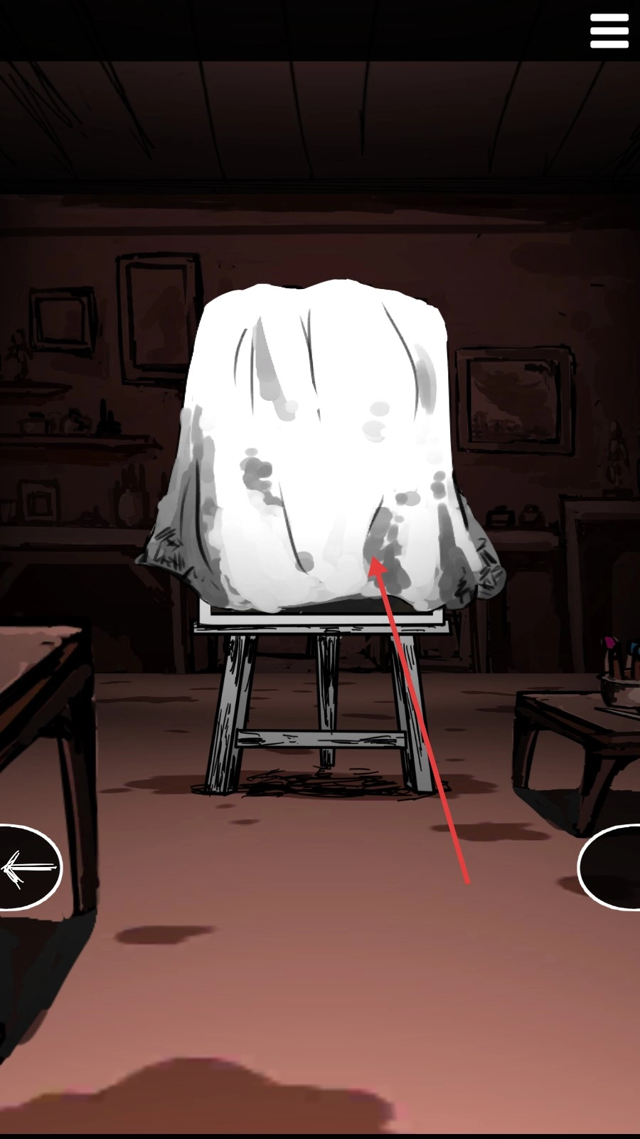 2、在房间里探索的过程中,如果留意到画架上有个被白布遮盖着的物件,不妨上前与之互动,瞧瞧能否从中发现一些有用的线索。