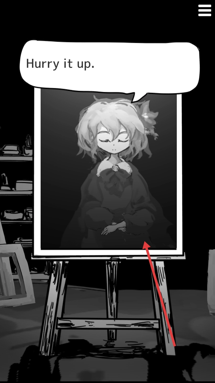 4、看到画里的少女和【Hurryitup】的提示时,我们得加快行动,按照要求点击画布,然后等待后续提示。