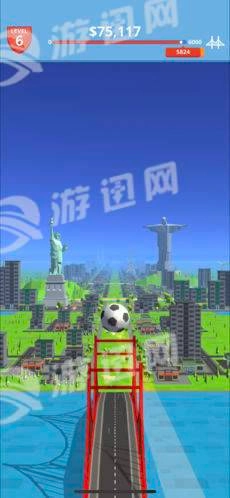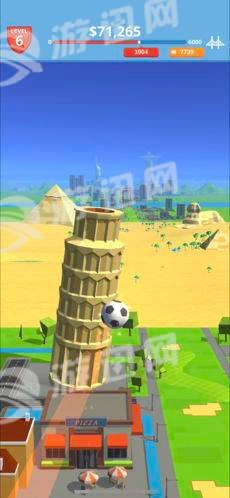 然后提升你的力量以及球的弹力,就能看到球掠过这些震撼人心的世界地标。