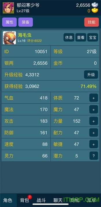 [深度策略养成] 宝宝支持打书与洗练操作,人物属性点可自由分配,法宝和技能能进行多重组合搭配。3转前重点加耐力可提升生存稳定性,3转后补充力量以增强输出能力,宝宝前期全加耐力扛伤效果出色——角色的每一步成长,都由你亲自规划定义。
