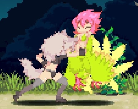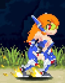 下蹲攻击钩脚(古烈踢),是目前仅有的对空勉强可用的招式,可用来应对羽毛哈比、陨石这类情况,还能让地面的小型怪物进入浮空状态;不过受限于自机本身对空能力的不足,它的实用性其实不算高,后续可以衔接空中下A攻击。