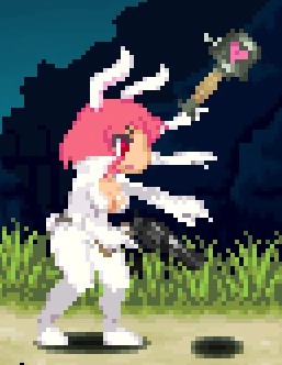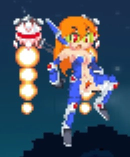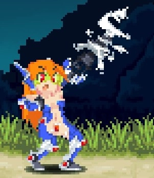 空中攻击转刀,米莉亚空战的精髓,范围超大,一次转刀可打出2次判定,配合米莉亚空中可跳6次每跳一下一个转刀简直酸爽,也可以一边跳一边大范围的移动防止被怪围