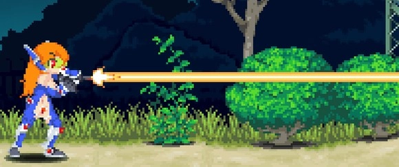 站立副武器,不蓄力就是一个小光枪,蓄力后可射很远的大光束,lv2光束变粗,lv3更粗而且可穿透敌人