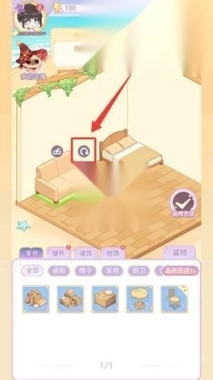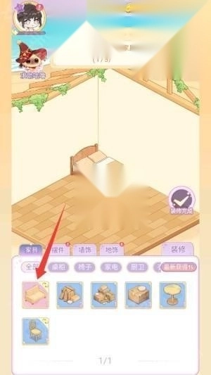 1、打开绘梦日记游戏,查看主线任务提示,点击装修按钮进入房间设计操作界面。