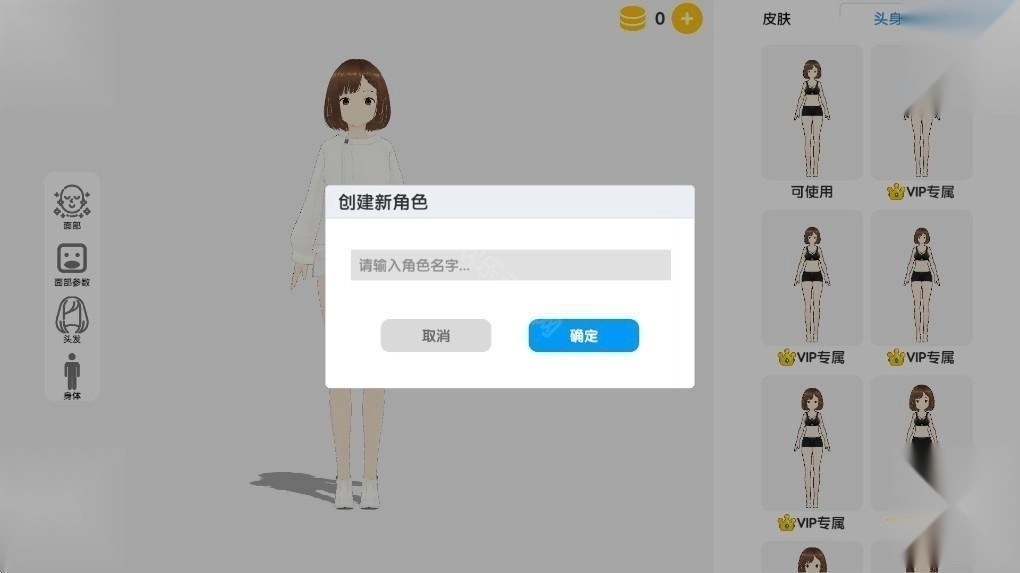 2、创建后可修改面部、面部参数、头发、身体。