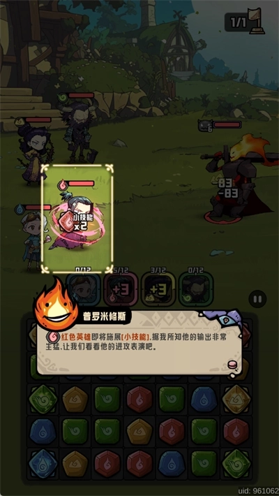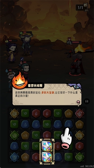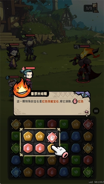 4位英雄分别对应不同颜色的宝石,当消除特定颜色的宝石后,同色的英雄便会发起攻击