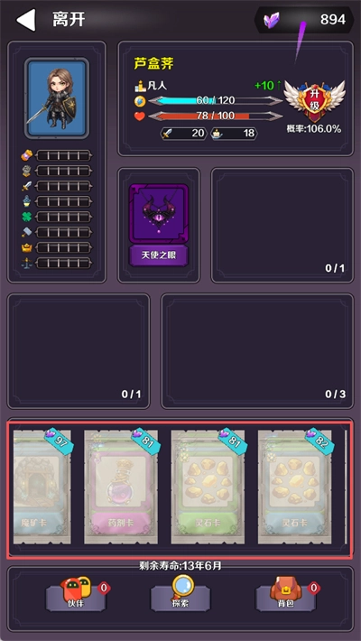 点击下方的探索来获取能量水晶,不过探索会消耗寿命