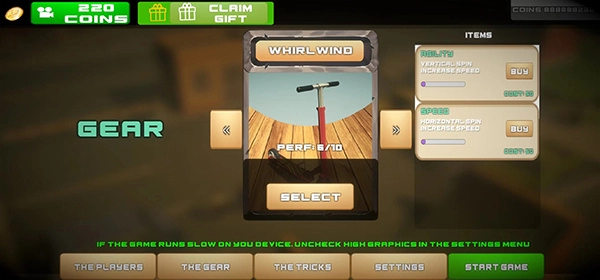自由选择角色和滑板,每种滑板都有独特的性能和外观。