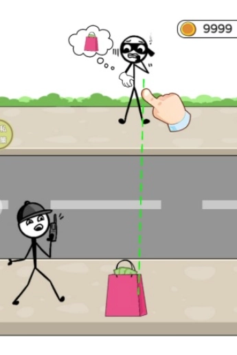1、用手指在屏幕上随意画出线条,助力眼前的火柴人神偷迅速完成偷盗任务吧。