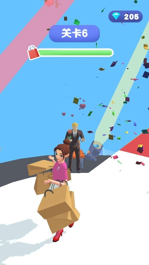 1.玩家在游戏里捡到钻石后,手里的购物袋会不断增加,你得尽量收集更多购物袋才行 2. 游戏中会出现不少危险的障碍物,要是玩家不小心被这些障碍物挡住,就得消耗手里的购物袋了