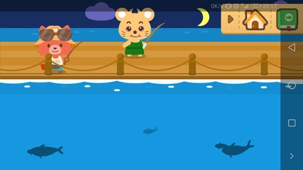 6、要是感到无聊,不妨点击下方的鱼形图标,和邻居结伴去钓鱼。钓鱼的操作很简单:点击河面就能抛竿,等鱼上钩后再点一下屏幕,鱼就会被钓上来啦。每次钓到的鱼都不一样,运气好的话还能收获珍稀品种呢。