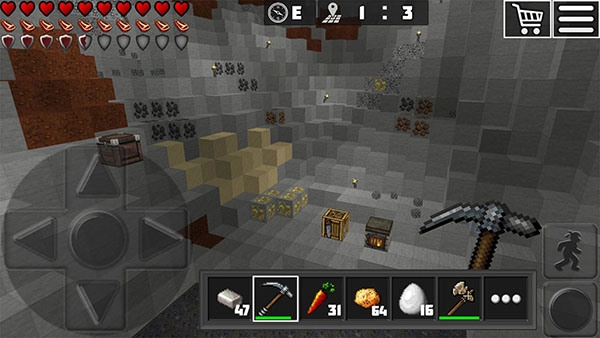 2、像素世界,自由探索沙盒地图,收集更多的资源;
