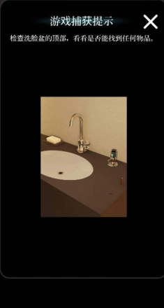 9.参照之前的线索(地砖、马桶盖、花盆底盘的图案),点击红色按钮开启左上方的柜子,即可获取【美工刀刀鞘】。