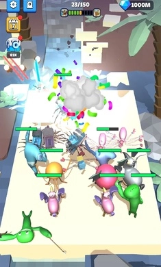3.战斗以团队对抗形式展开,目标是在充满障碍与互动元素的花园战场上彻底击败对面的敌方小队。