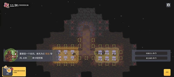 4、然后我们就可以来挖掘附近的土块扩充自己的巢穴了。
