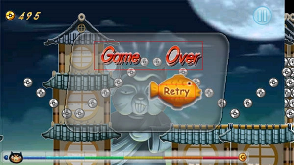 3.点击屏幕可以使忍者猫进行跳跃以收集沿途散落的金币并越过低矮障碍。