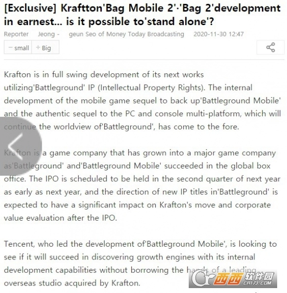 据彭博社消息,游戏开发商PUBG Corporation正计划为战术竞技射击游戏《绝地求生》打造续作,最快或于2021年发布。报道提到,PUBG计划在今年推出一款“基于《绝地求生》”的全新战术竞技游戏,2022年还将发布另一款“与《绝地求生》相关”的PC及主机游戏,不过目前尚不确定这两款是否为同一游戏针对不同平台的版本。2020年11月,曾有媒体报道PUBG母公司Krafton在开发一款采用《绝地求生》世界观的新游戏,代号“Project XTRM”。据消息人士透露,该游戏将登陆移动、主机和PC平台,“很可能”就是《绝地求生2》。