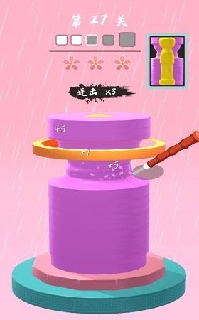 这是一款模拟陶器制作的放置休闲游戏。你只需滑动屏幕,就能把转盘上的陶土捏塑成自己心仪的形状,再借助各种工具精心雕琢,让它变成你理想中的模样。游戏里有上百种色彩各异的颜料可供解锁,你可以用它们绘制出五彩斑斓的图案。最后将作品放入窑炉,静静等待几十秒,就能看到自己亲手打造的精美瓶子啦。快来体验“陶器小工匠”游戏,了解陶器制作的真实流程,一起学习吧!