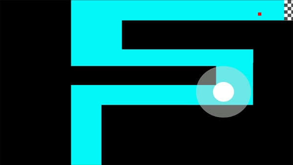 2、游戏主角是一个小点,通过控制它不碰到两边墙壁到达终点即为为胜利