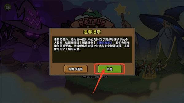1. 游戏启动后,第一步必须点击【同意】按钮,认真确认相关协议,这是开启游戏体验的首要环节。
