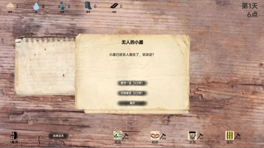 物资搜集要点:在学校被炸毁前,必须找到种植手册;无人小屋可获取药品,学校内能够搜到绷带。