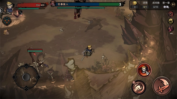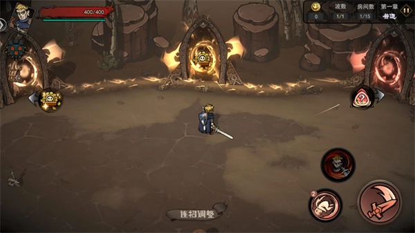 4、游戏正式启动后,左侧区域用于操控角色移动,右侧则分布着攻击、翻滚及技能按键;玩家需操控角色进入不同的传送门,以此开启闯关流程。