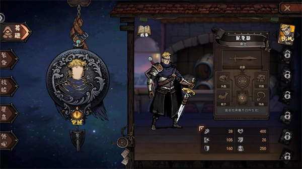8、在主界面点击右下角的按钮可切换不同英雄,解锁新英雄需收集一定数量的英雄碎片并前往酒馆兑换。